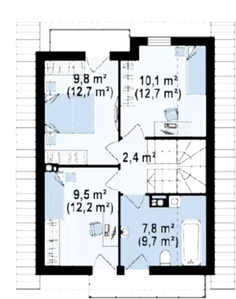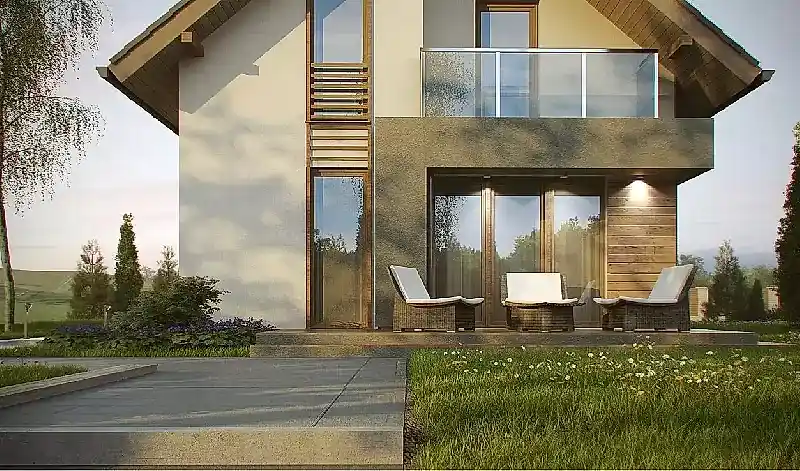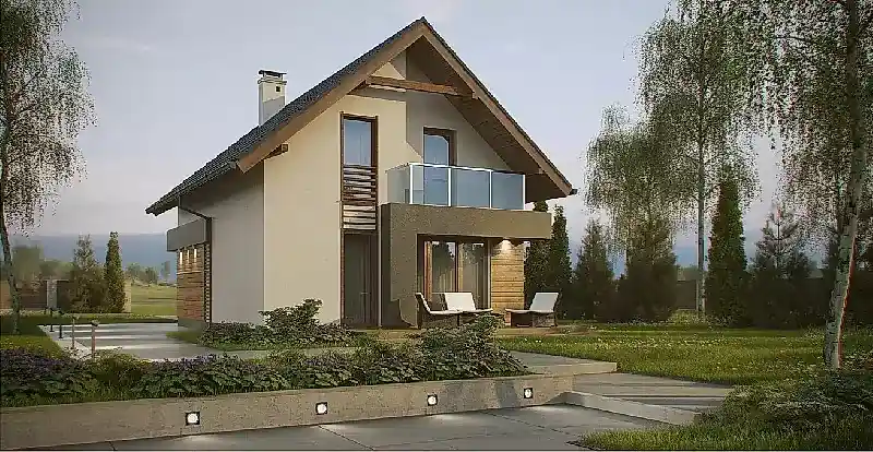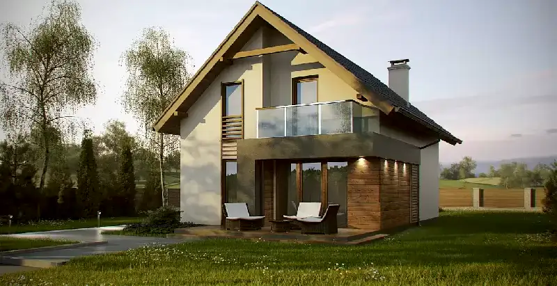Проект "Вахман " - красивый двухэтажный дом для постоянного жилья из газоблока с балконом.Площадь Ауэзова, 40 94.1 кв.м. с размерами 7x9.