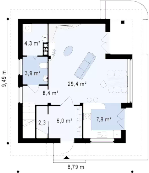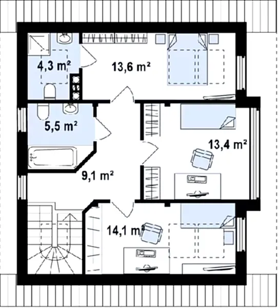 Проект "Розалия " - прекрасный двухэтажный дом для постоянного проживания из газоблока.Площадь Ауэзова, 97 122.1 кв.м. с размерами 8x9.