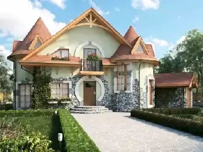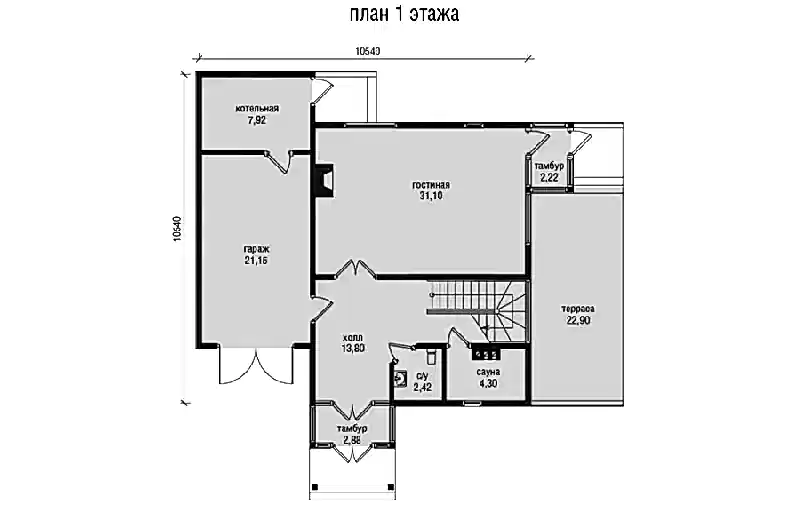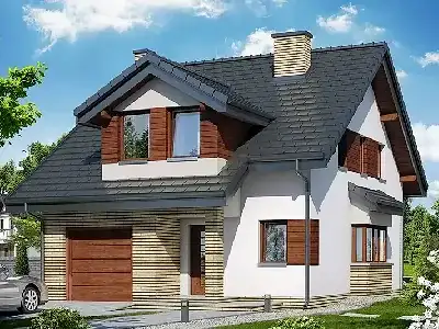 Проект "Эрнестина " - отличный двухэтажный дом для постоянного проживания из газоблока с гаражом, с террасой, с баней.Площадь Рыскулова, 94 149.34 кв.м. с размерами 10x10.