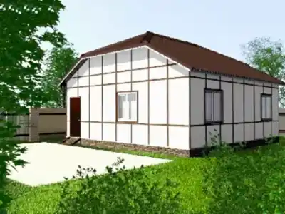 Проект "Резерфордия " - красивый одноэтажный дом для постоянного проживания каркасных.Площадь Назарбаева, 67 47.38 кв.м. с размерами 8x7.