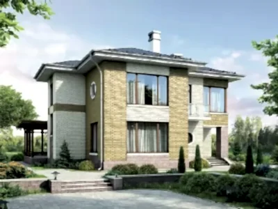 Проект "Изора " - идеальный двухэтажный дом для постоянного жилья из керамзитоблоков с балконом, с террасой.Площадь Сатпаева, 101 197.9 кв.м. с размерами 12*12.